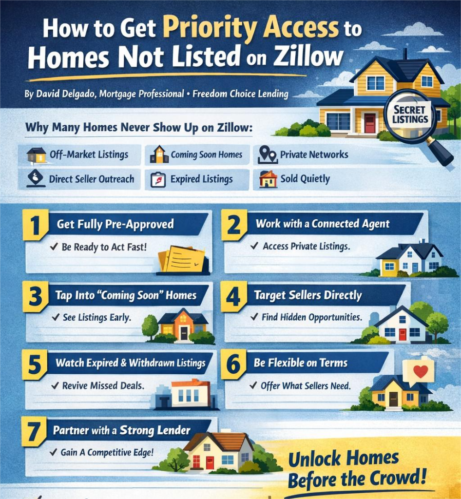 Zillow is a powerful tool—but it only shows publicly listed homes. Many properties are sold through alternative channels, including: