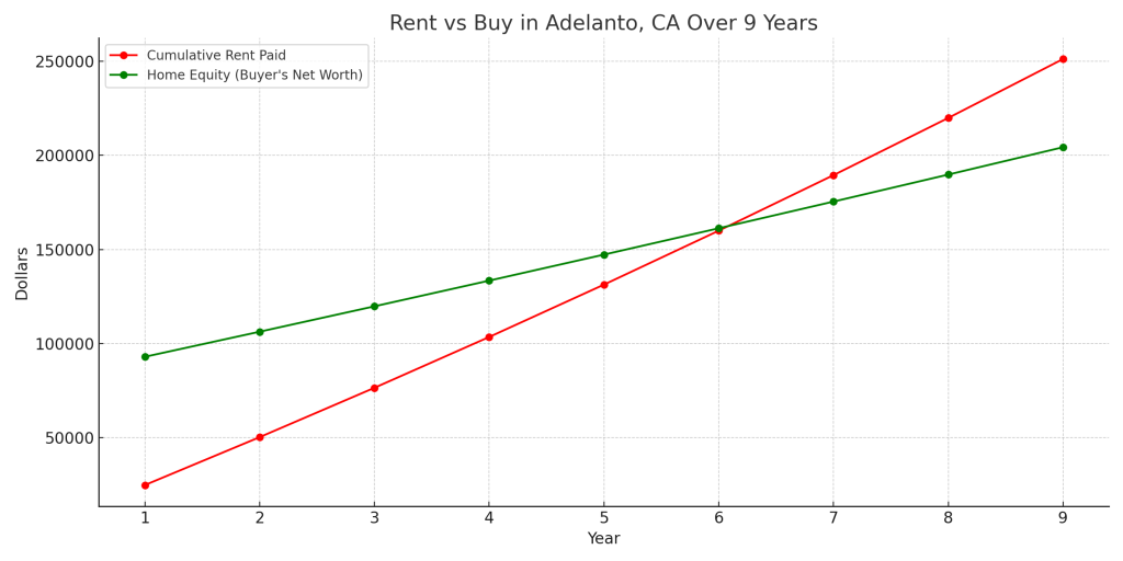 Financial Comparison: Renting vs. Buying Over 9 Years