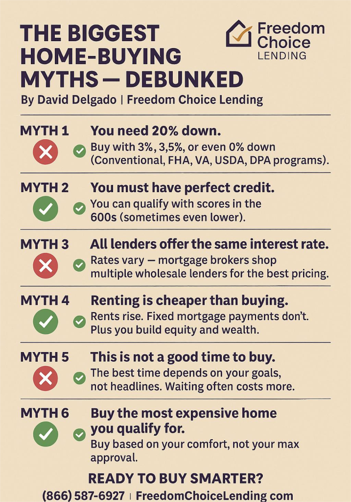 Every day, I talk to renters who are ready to buy but feel held back by myths they’ve heard from friends, family members, or social media. These misconceptions can delay your journey to homeownership — or even stop you altogether.