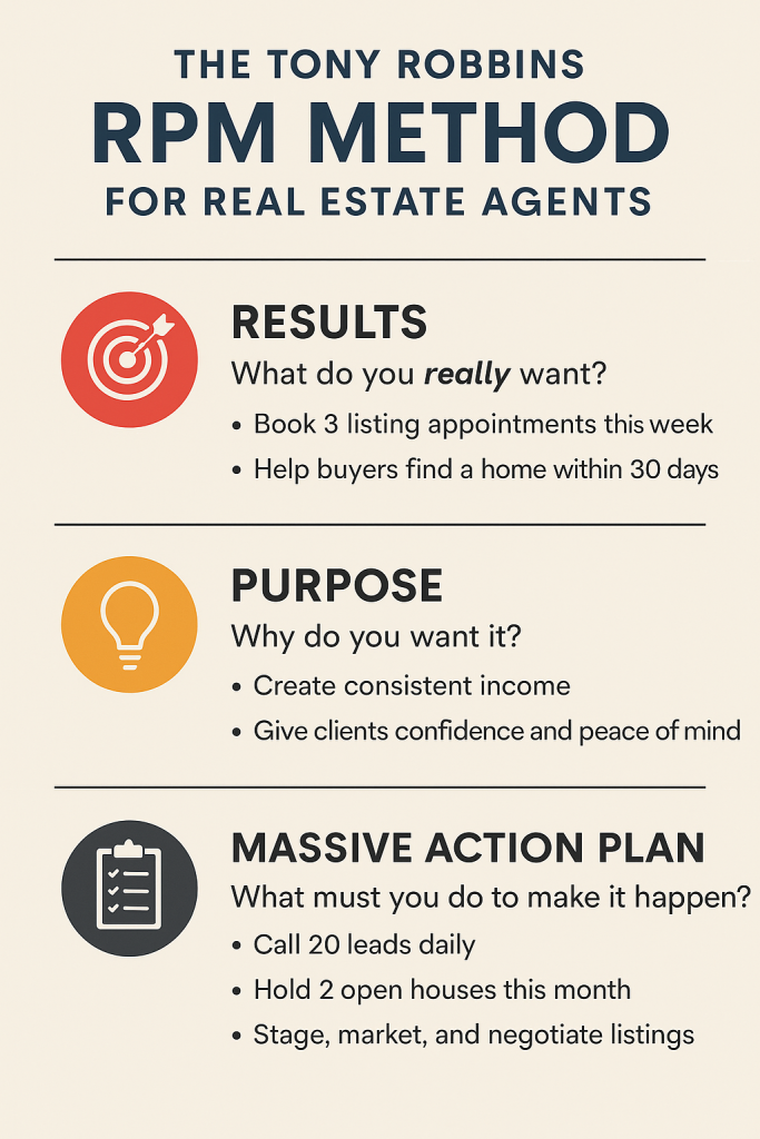 That’s where Tony Robbins’ RPM Method — Results, Purpose, and Massive Action Plan — can completely transform how you run your real estate business.
